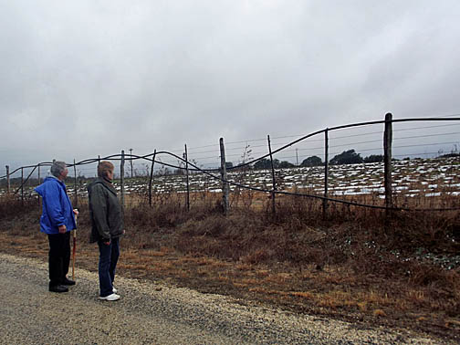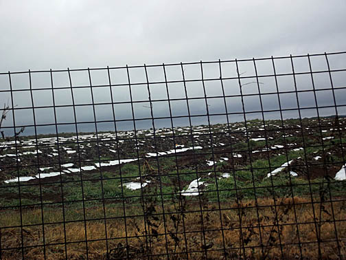 | What appears to be rows of ice is white plastic sheeting for a broccoli field. |